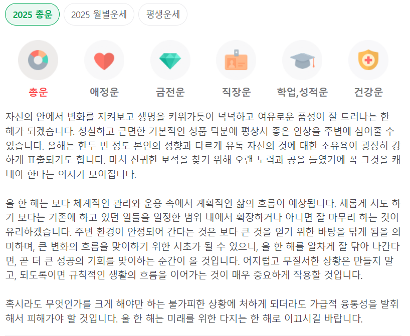 새해를 맞이하며 가장 궁금한 것 중 하나는 "이번 해는 나에게 어떤 일들이 일어날까?"라는 점일 것입니다. 특히 2025년은 을사년(乙巳年)이라는 특별한 기운을 담고 있어서 더욱 기대가 되는 해입니다. 새해의 방향성을 찾기 위해 다양한 무료 운세 플랫폼을 이용해 볼 수 있는데요, 제가 직접 사용해본 경험과 함께 상세히 소개해 드리겠습니다.